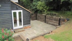 Externally, the area around the new kitchen extension was given a new lease of life by buying up the higher ground using steelwork and sleepers and incorporating new steps. This was completed with a large patio area to complement the period of the property.