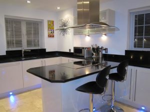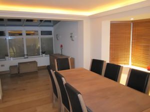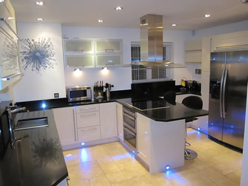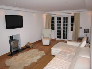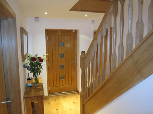 In keeping with the cottage aspect, solid oak architraves, skirtings, doors and staircases were fitted, to combine both the old and new. To the rear of the property, hardwood decking was used to house the sunken hot tub and as a flooring for the stainless steel and glass balcony.