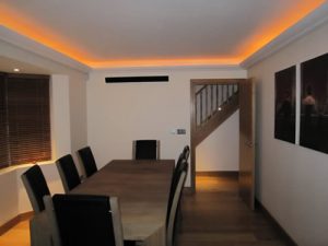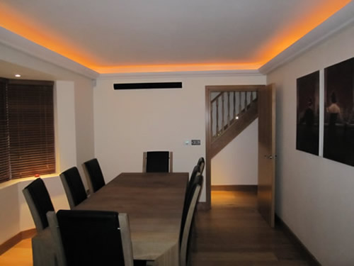 The entire house has a particular focus for mood lighting, particularly in the dining room and lounge, with Lutron lighting controls. Over 270 lights were fitted, of which over 40% are energy efficient.
